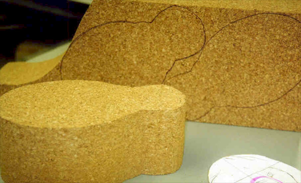 Making a Jig for Cutting Out Cork Decoy Bodies I like this method when I have a lot of bodies to cut for the same species. I start jig construction by laying out the top view of my pattern on a square block of cork. Once this is done I cut out the top view and then build a box around the cutout. Plywood works the best for this but "one by stock" will work also.