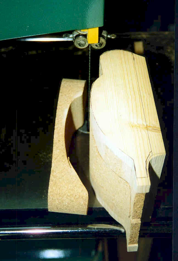 From this point on you can just cut out top views from your pattern using the Puzzle method and drop them in the jig and place the jig on the side and cut out following the top outline. Be careful not to cut into your jig when cutting the side view....just follow the outside edge. The jig can be used over and over providing you use the same pattern. This is very useful when making a large Bluebill rig for instance.